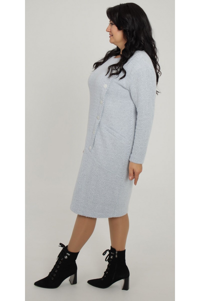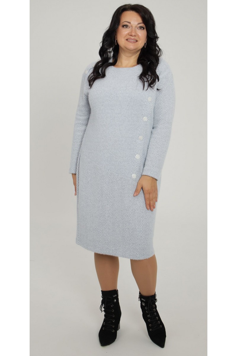 Теплое деловое платье 2025 большого размера LB271502 голубое