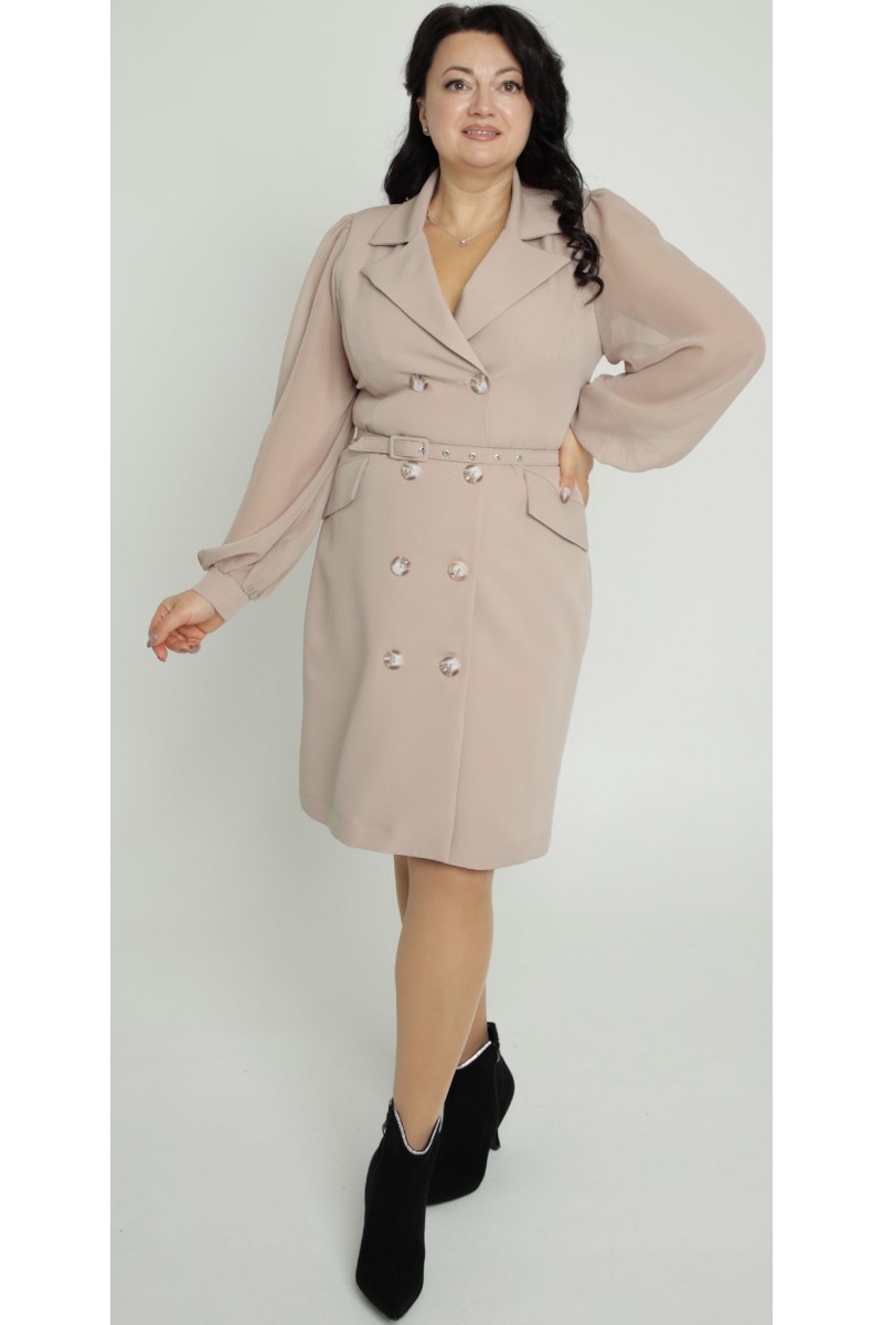 Современное платье с поясом – элегантный и изысканный образ. Модель выполнена в стиле жакета – с отложным воротником, двухбортной застежкой на декоративные пуговицы. Рукав длинный.