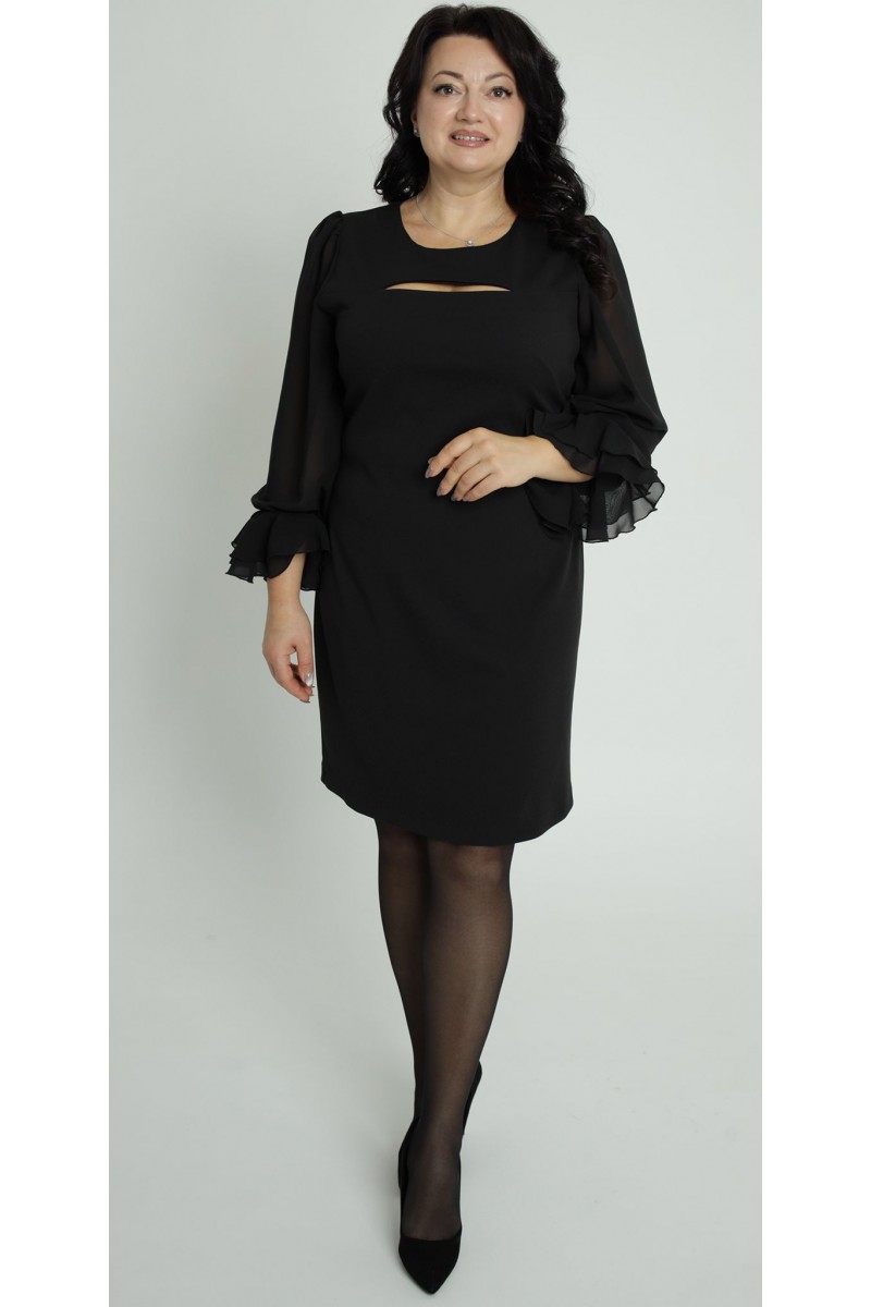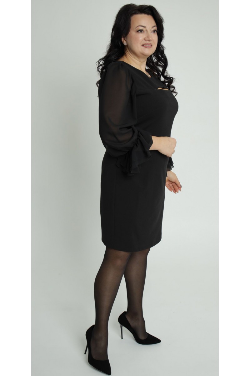 Модель дополнена эффектным вырезом на груди и пышными двухуровневыми манжетами.